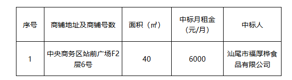 汕尾火車站站前廣場(chǎng)商鋪招租結(jié)果公告